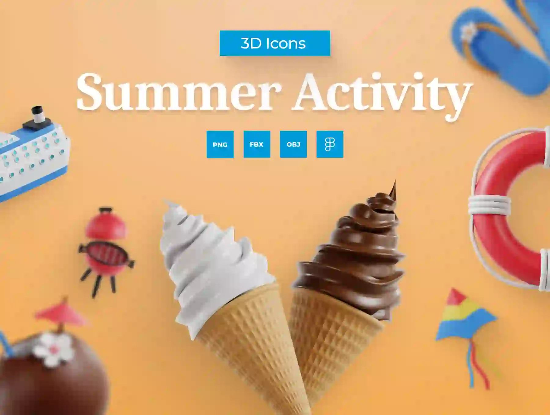 Elevate your mobile app, UI/UX, and web design projects with the 3D Summer Acitivy Icon Set, adding a unique and eye-catching element to your designs.