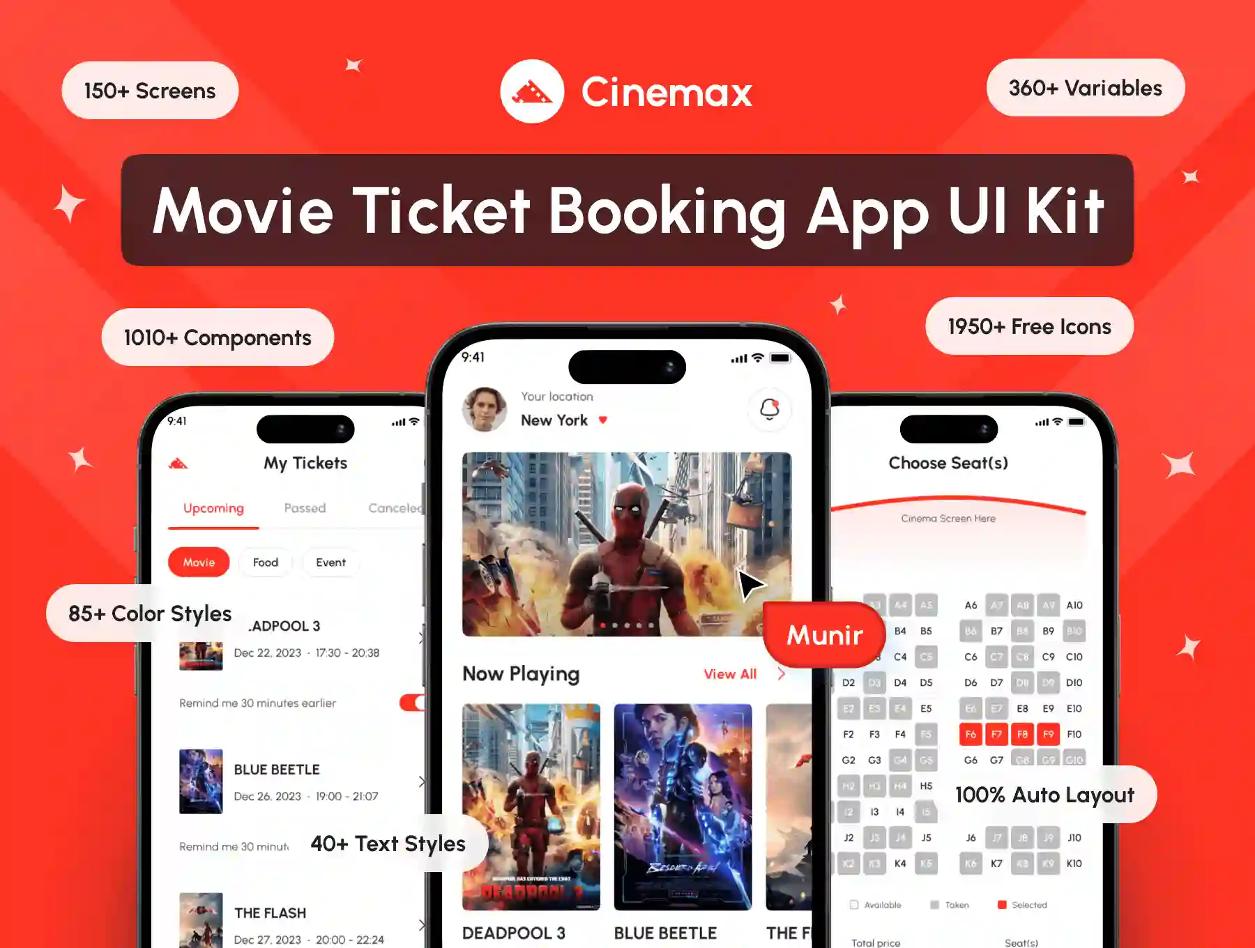 Cinemax is a Premium & High Quality UI Kit with Full Functional of Movie Ticket Booking Mobile App. You can see various cinemas, book movie tickets, manage tickets, order food for the cinema, and many other features.